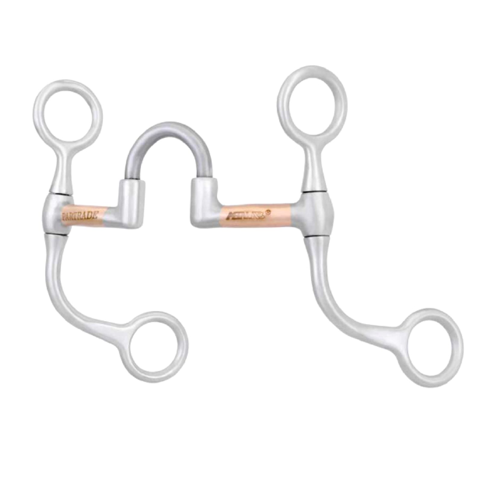Westernová korekční páka s měděnými proužky podporující slinění a tím také aktivitu koňské huby.Střední velikost portu (5cm) a ramen vhodná, pro mladé a středně pokročilé koně. Horní kroužek tvarovaný směrem od koňské hlavy, pro větší komfort. Tloušťka: 11mm, velikost: 12,5 cm, délka ramen: 15cm (Reining collection, level2)