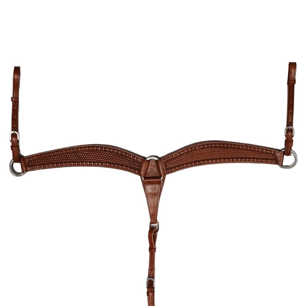 Je navržen tak, aby spolehlivě stabilizoval sedlo a zároveň respektoval pohodlí koně. Anatomický tvar přirozeně kopíruje hrudník, rovnoměrně rozkládá tlak a neomezuje pohyb lopatek. Precizní zpracování z kvalitní kůže a jemné zdobení podtrhují nadčasový vzhled, který se hodí jak pro každodenní práci, tak pro závody.