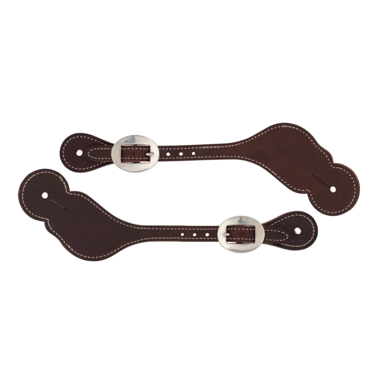 Tyto řemínky na ostruhy představují kombinaci vynikající kvality, elegance a funkčnosti. Jsou vyrobeny z prvotřídní kůže Latigo v elegantní barvě burgundy a jsou navrženy tak, aby perfektně seděly na botě. Klasický design s kovovými přezkami pro snadné a bezpečné připevnění. Jejich zpracování zajišťuje odolnost a dlouhou životnost.