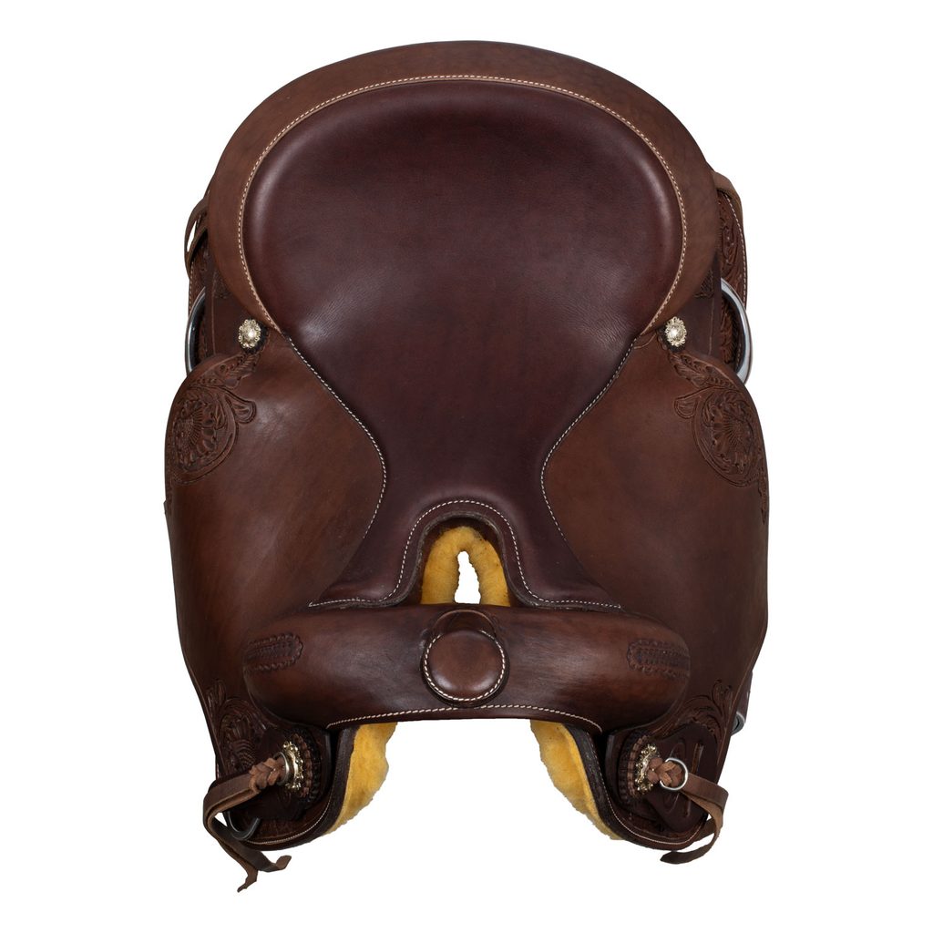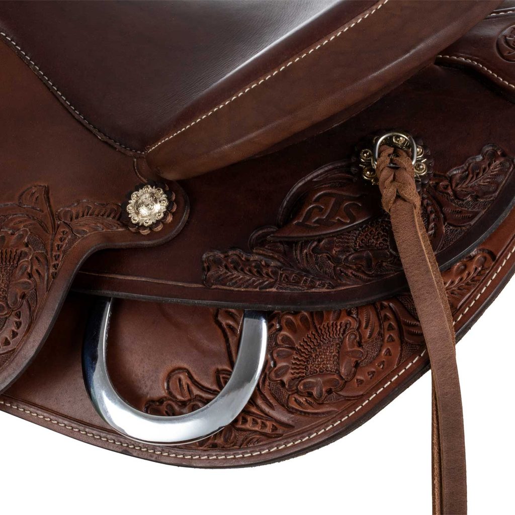 Westernové sedlo Freemax Cow leather typ Short je vyrobeno z ručně zdobené kvalitní hovězí kůže. Tento typ disponuje zkrácenou zadní "sukní", tudíž je vhodné pro krátké koně.