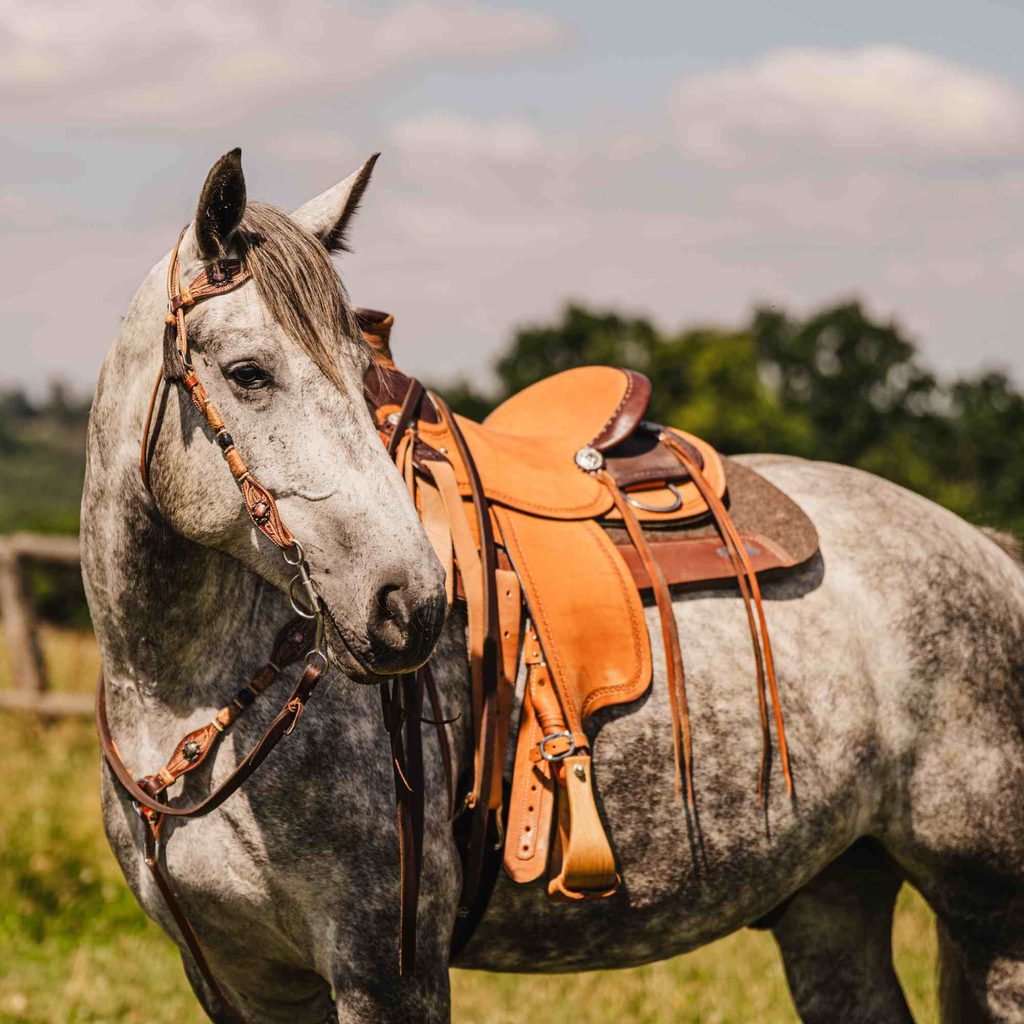 Pokyny k péči: Pečujte o kožené vybavení pravidelně, bude mít tak velmi dlouhou životnost. Nejdříve kůži omyjte v teplé vodě se sedlovým mýdlem, nechte uschnout a poté namažte balzámem. Pravidelné mazání speciálními prostředky kůži změkčuje, takže je pružnější a nepraská a zároveň ji impregnuje, takže je výrazně odolnější vůči vlhkosti a také vůči koňskému potu, který je velmi agresivní.