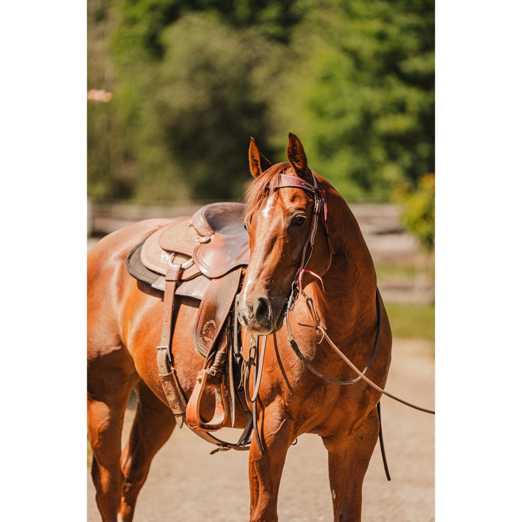 Pokyny k péči: Pečujte o kožené vybavení pravidelně, bude mít tak velmi dlouhou životnost. Nejdříve kůži omyjte v teplé vodě se sedlovým mýdlem, nechte uschnout a poté namažte balzámem. Pravidelné mazání speciálními prostředky kůži změkčuje, takže je pružnější a nepraská a zároveň ji impregnuje, takže je výrazně odolnější vůči vlhkosti a také vůči koňskému potu, který je velmi agresivní.