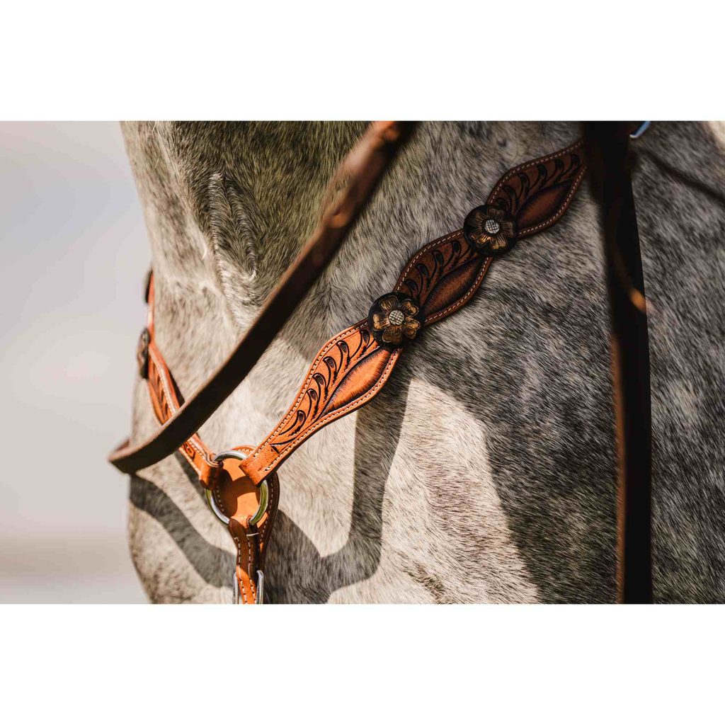 Tento jedinečný set kombinuje praktický design s elegantní estetikou. Uzdečka přes jedno ucho je navržena tak, aby pohodlně seděla a zároveň zajišťovala maximální kontrolu. Poprsník Cassini Annie je zdobený propracovanými detaily a ornamenty, které dodávají celému vzhledu luxusní a stylový nádech. Perfektní volba pro ty, kdo hledají spojení funkčnosti a výjimečného stylu v jednom.