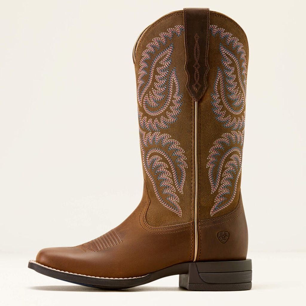 Dámské westernové boty Ariat Cattle Caite kombinují výrazný westernový styl s pokročilými technologiemi pro maximální pohodlí při celodenním nošení. Dekorativní pětiřadé prošívání dodává botám atraktivní vzhled, zatímco promyšlená konstrukce zajišťuje komfort při práci ve stáji, při chůzi i během jízdy v sedle.