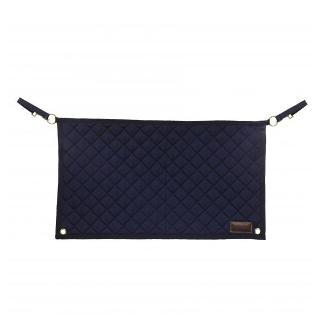 Závěr dveří závodního boxu v tmavě modré barvě o rozměrech 92 x 53 cm. Je vyroben z vysoce odolného polyesteru 600D a lze jej prát v pračce na 30°, bez sušičky. Snadno se připevňuje. V horních rozích jsou dva vyztužené kroužky zlaté barvy s nylonovým popruhem a karabinou k připevnění k boxu. Přídavné kroužky také ve spodní části. Umožňuje koni výhled z boxu. Závěr zdobí logo z umělé kůže Kentucky.