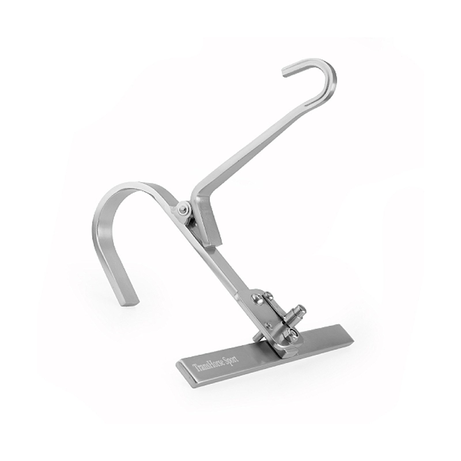 Trans Horse je novinka v naší nabídce! Tento skládací hliníkový závěsný háček je ideální do stáje a velmi praktický i na závody. Hák je dostatečně robustní pro zavěšení těžších věcí, ale díky hliníku je lehký & elegantní. Pro uzdečky, martingal, ohlávku, vodítka, ostruhy, udidla a další. Hmotnost: 0,75 kg